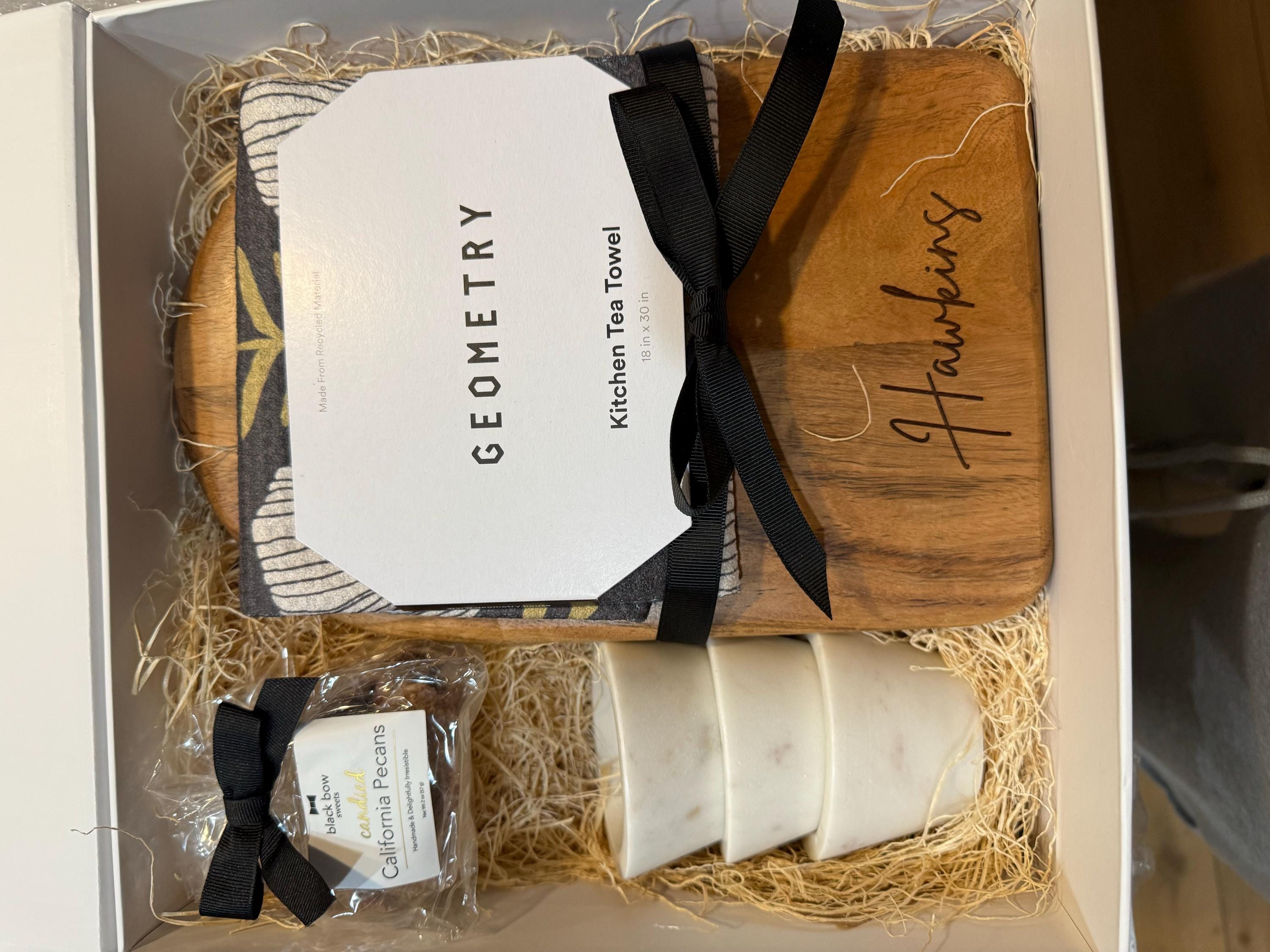 Give a gift that feels as thoughtful as it looks. This personalized charcuterie board gift box is a beautifully curated houseware set designed to celebrate love, home, and connection. Whether you’re surprising newlyweds, thanking a gracious host, or celebrating a new home, this elegant box brings charm and warmth to any occasion.