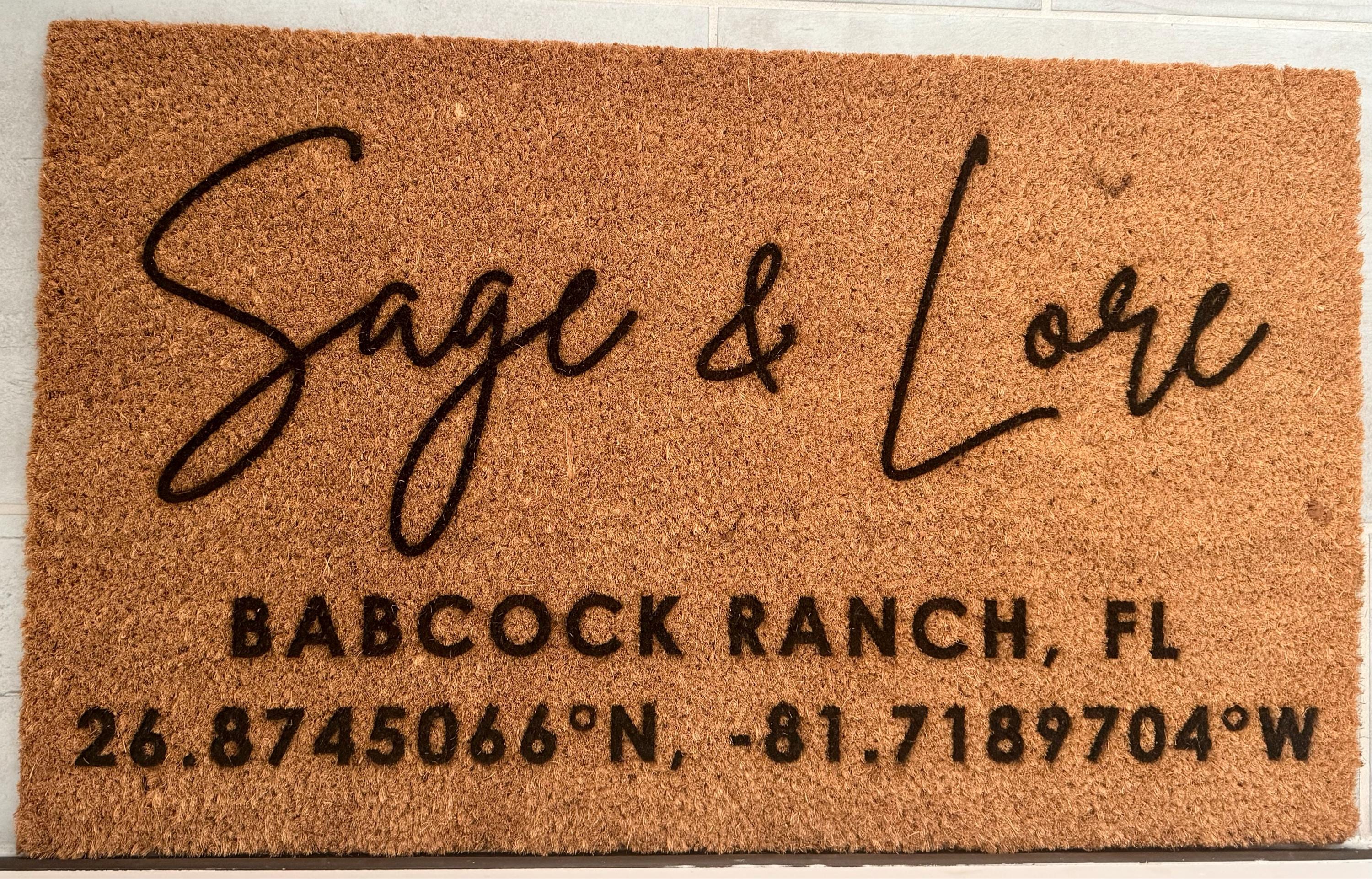 Add a custom doormat to your front door. This door mat makes a great house warming gift or realtor closing gift. Make this welcome mat extra special by adding the coordinates.